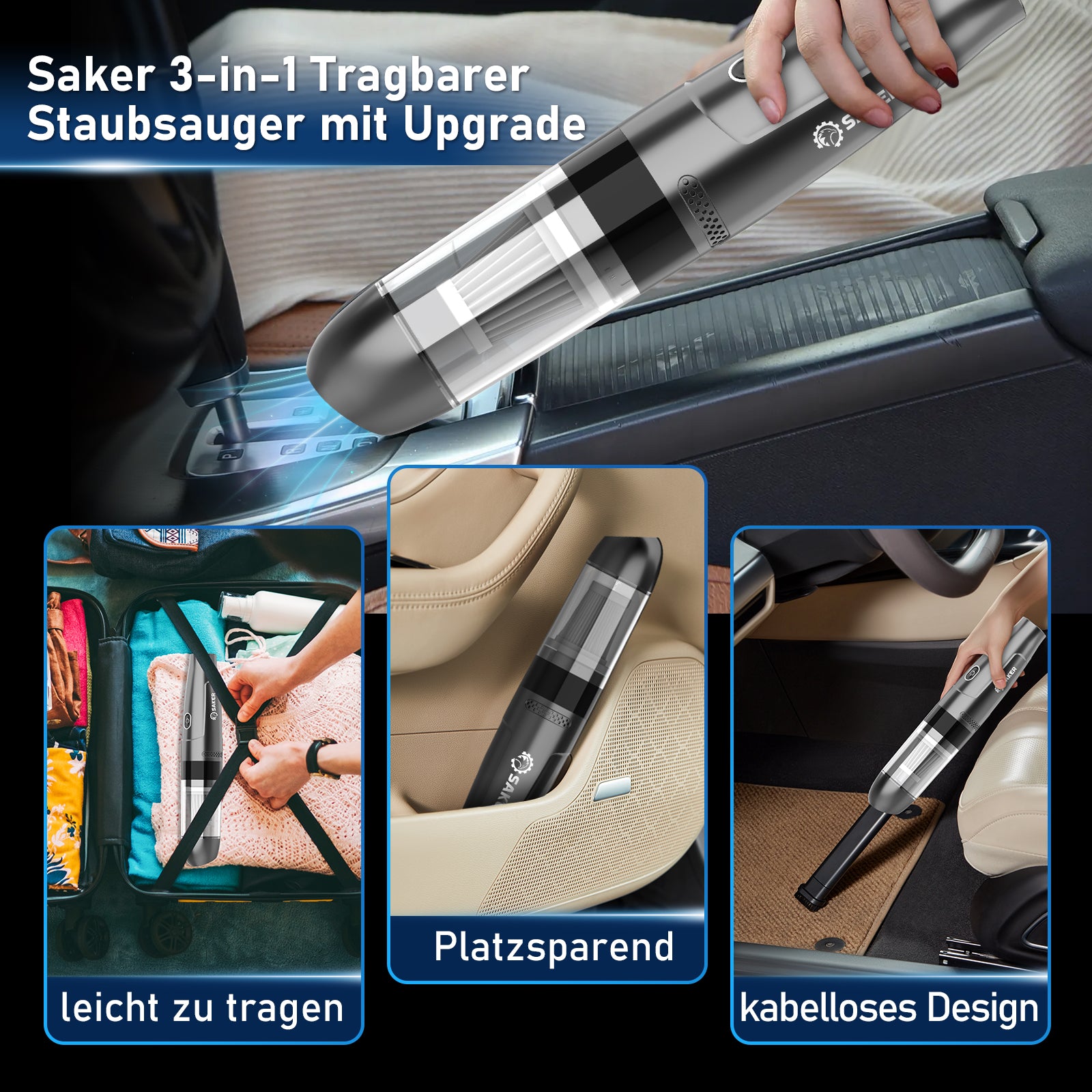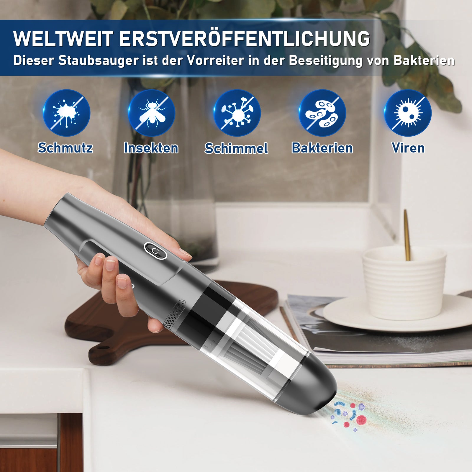 Steigen Sie auf ein neues Sauberkeitsniveau auf mit unserem tragbaren 3-in-1 Staubsauger - entfernt mühelos Staub, während seine fortschrittlichen Funktionen Keime beseitigen und für eine gesündere Wohnumgebung sorgen.