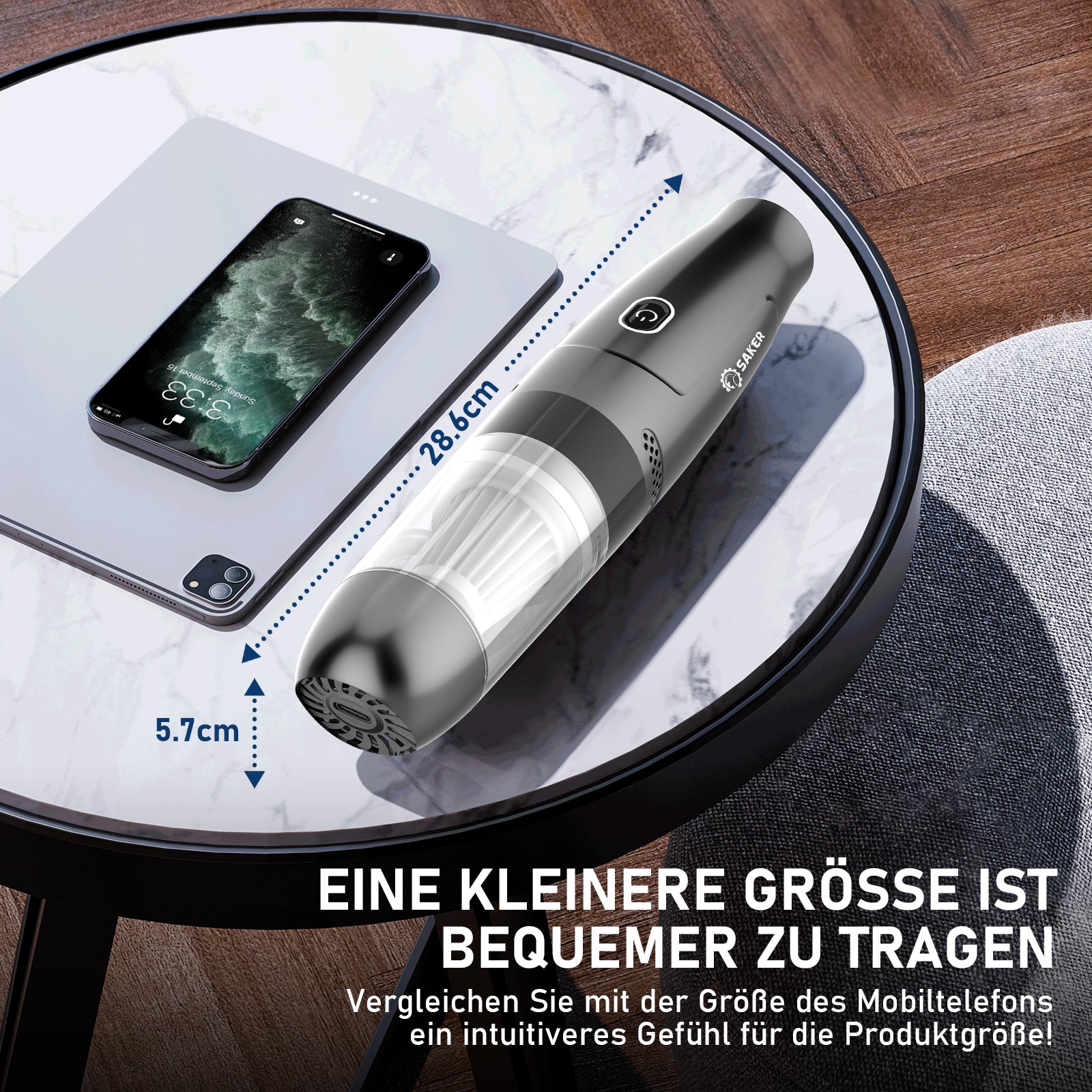 【Leistung im Miniaturformat】Kompakt und dennoch leistungsstark. Unser Staubsauger ist etwa so groß wie ein Smartphone, bietet jedoch eine beeindruckende Reinigungsleistung. Große Reinigungskraft im kleinen Format.