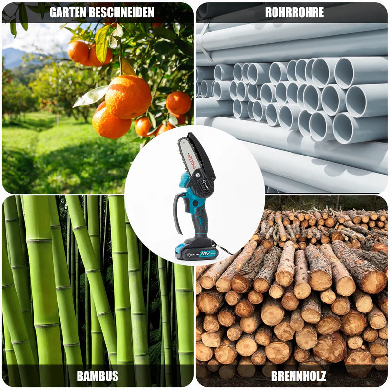 【WIEDERAUFLADBARE ELEKTRISCHE KETTENSÄGE】 - Die Saker Mini-Kettensäge ist mit einem wiederaufladbaren Lithium-Akku mit 18 V und 1500 mAh ausgestattet, der lange verwendet werden kann. Aufladen jederzeit, bequem und schnell.