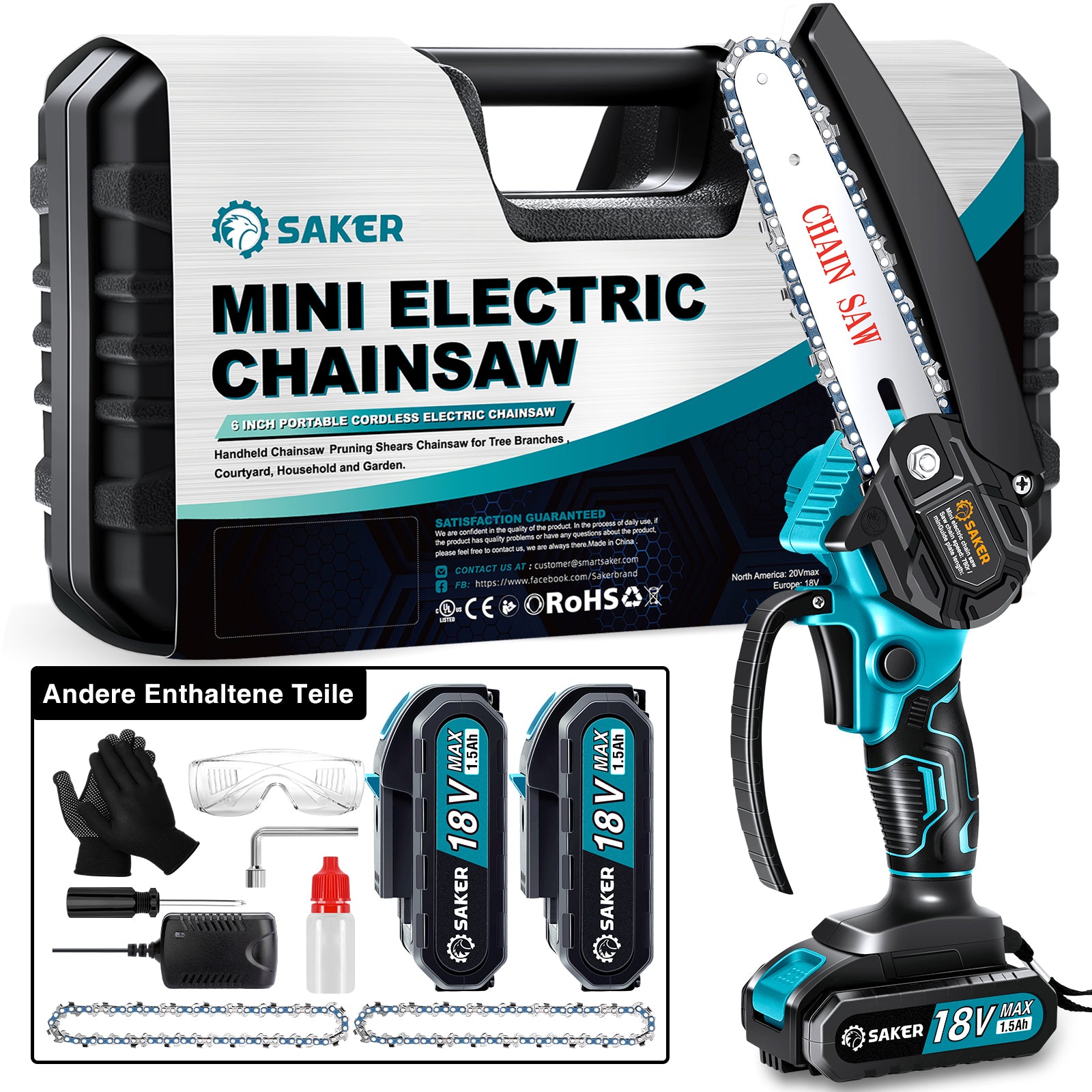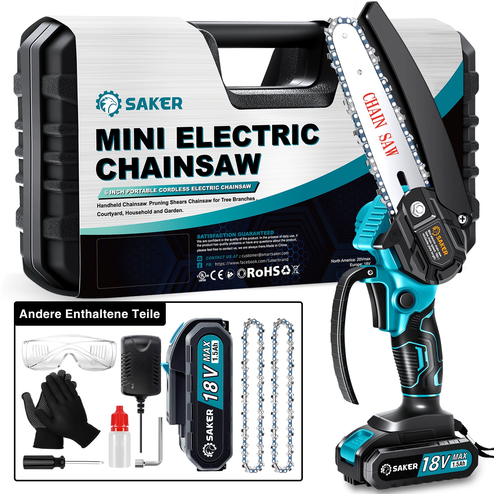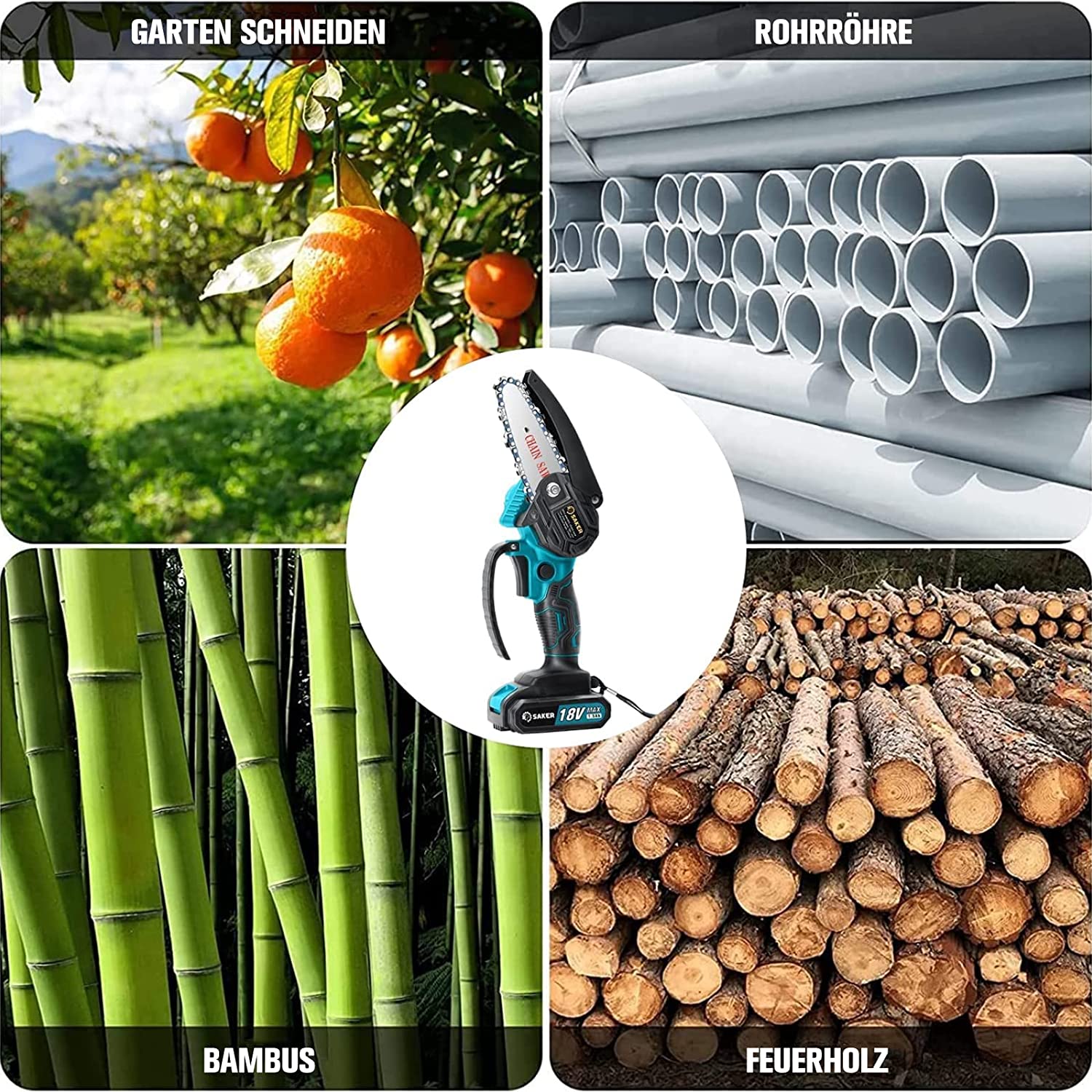 【WIEDERAUFLADBARE ELEKTRISCHE KETTENSÄGE】 - Die Saker Mini-Kettensäge ist mit einem wiederaufladbaren Lithium-Akku mit 18 V und 1500 mAh ausgestattet, der lange verwendet werden kann. Aufladen jederzeit, bequem und schnell.