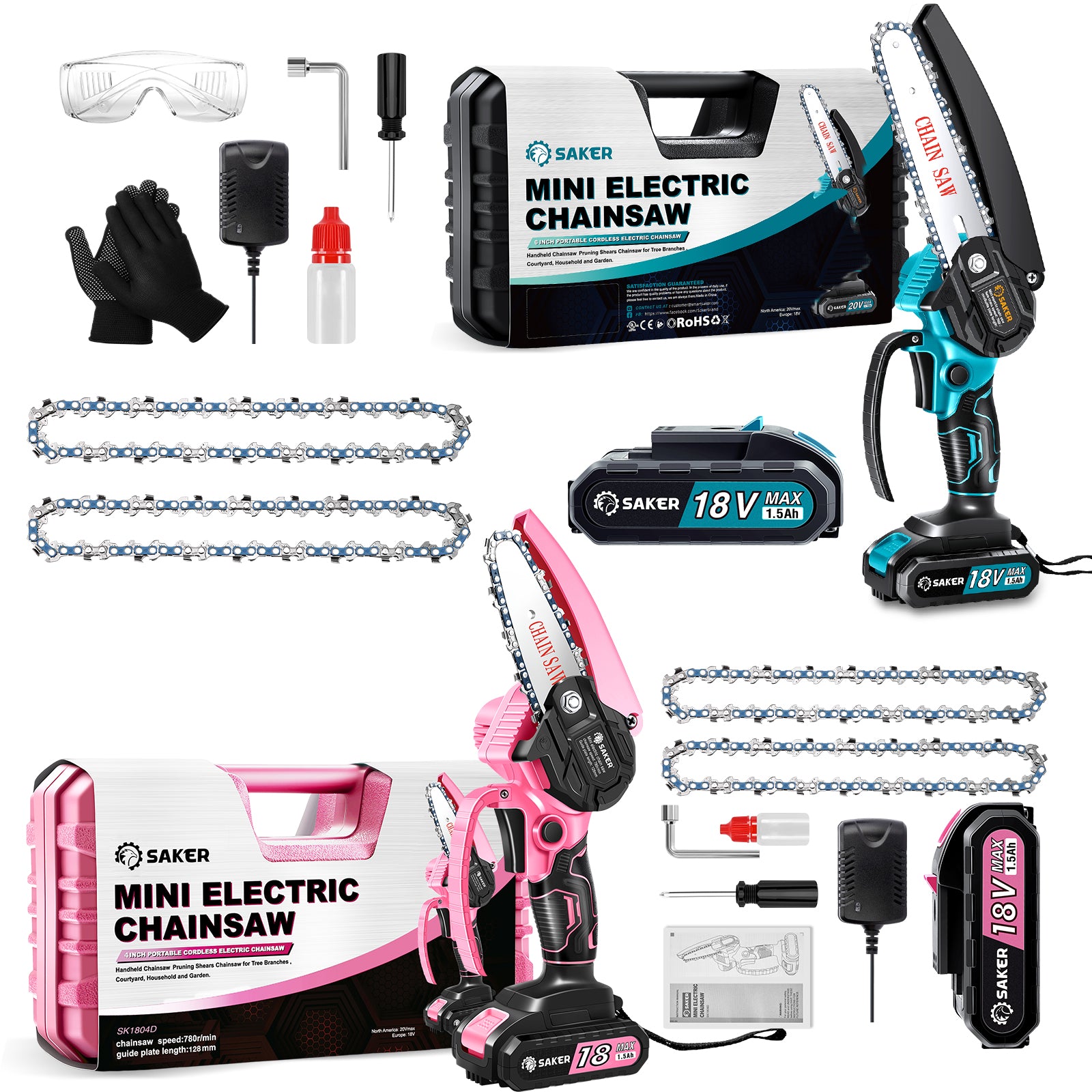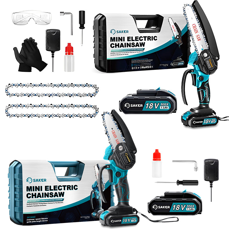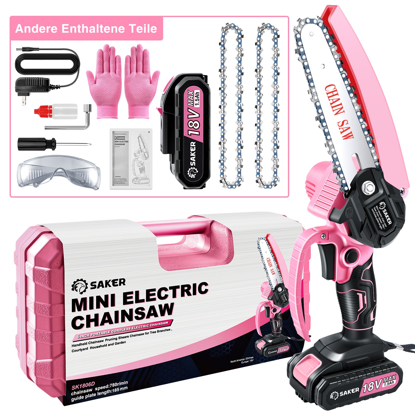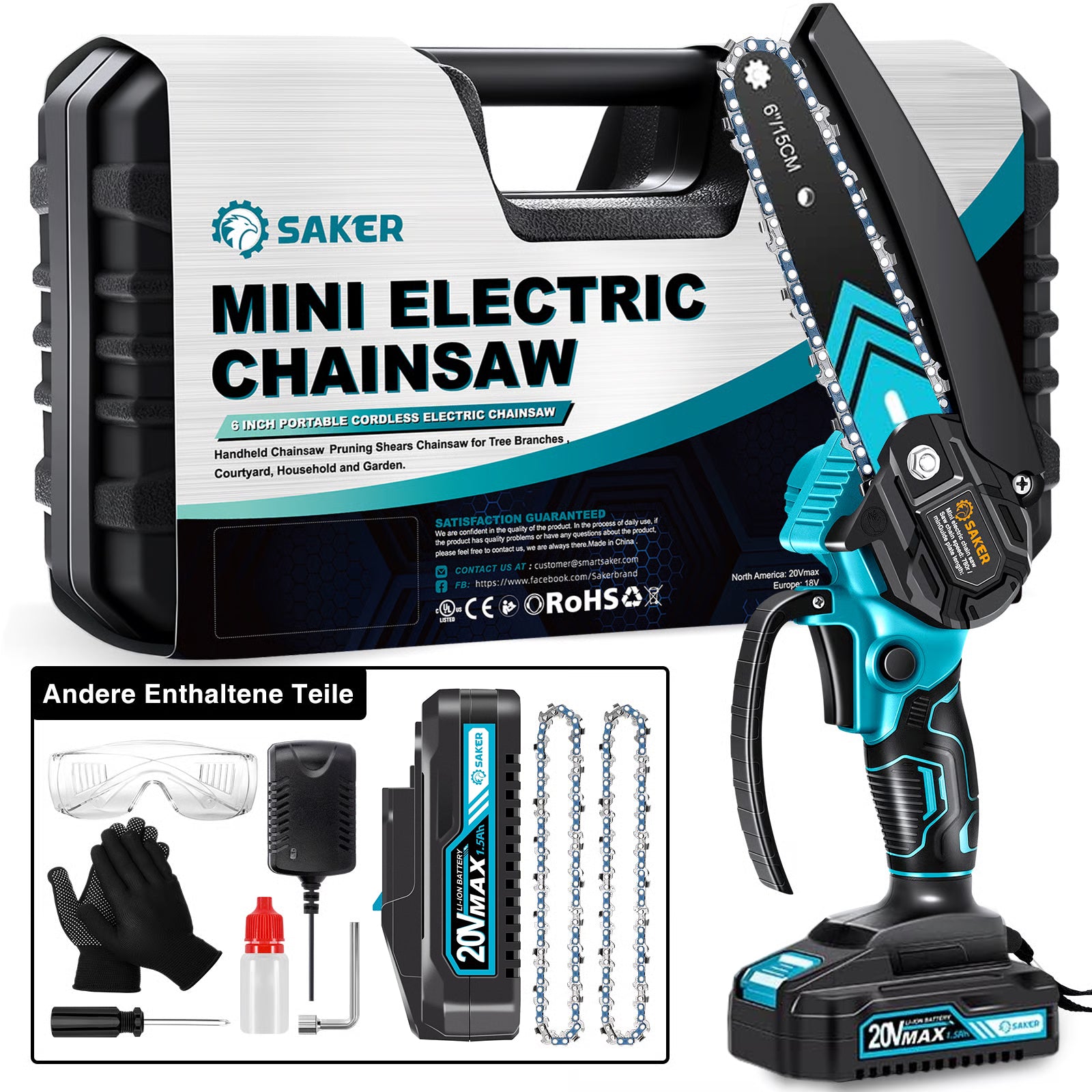 【WIEDERAUFLADBARE ELEKTRISCHE KETTENSÄGE】 - Die Saker Mini-Kettensäge ist mit einem wiederaufladbaren Lithium-Akku mit 18 V und 1500 mAh ausgestattet, der lange verwendet werden kann. Aufladen jederzeit, bequem und schnell.