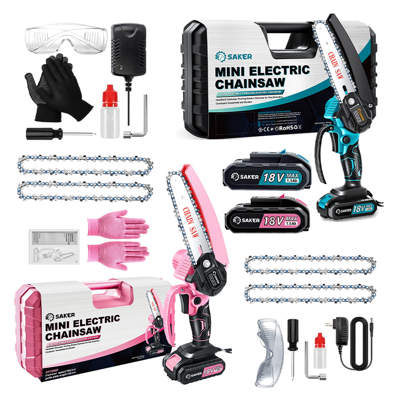 Hochwertige Kette - Die Saker Mini-Kettensäge verwendet eine hochwertige Führungskette, die einem tiefen Abschreckprozess unterzogen wurde, um einen reibungslosen Schnitt zu gewährleisten. Und es wird ein leistungsstarker reiner Kupfermotor verwendet.