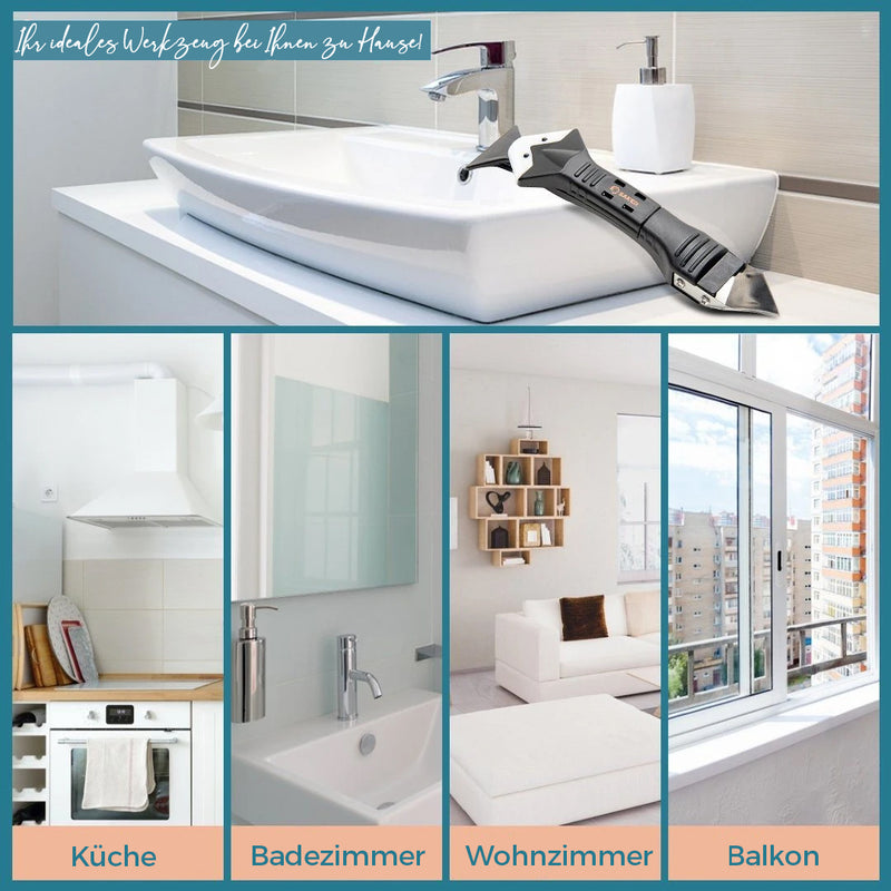Dieses 3 in 1 Silikonentferner-Multitool ist ein Muss für jeden Heimwerker! Das perfekte Werkzeug, um ein professionelles Finish für Ihre Verstemmungs- und Silikonprojekte zu gewährleisten. Mit seinem ergonomischen Griff und den verstellbaren Köpfen sorgt es jedes Mal für eine mühelose Arbeit!