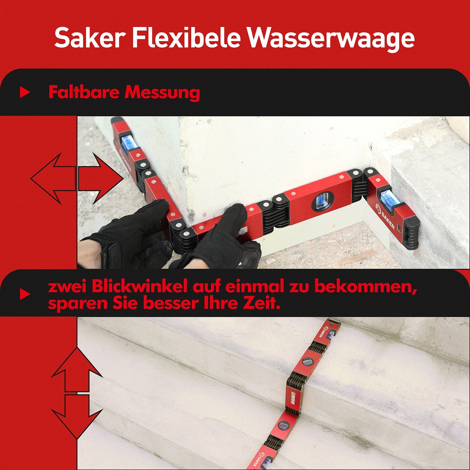 FALTBAR UND FLEXIBEL: Multifunktionale faltbare Wasserwaage, die für die tägliche Aufbewahrung als rechteckiger Block und als normales gerades Lineal für vielseitige Aufgaben gefaltet werden kann.